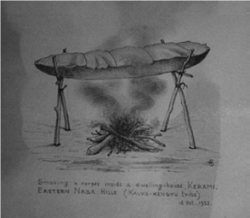 Over the years, my interest in exploring ethno-parallels to protohistoric burials, (the methods of disposing the dead) gained momentum. I was of course more concerned with the bone contents of the burial. I started working with my student Worrawit Boonthai, of University of Bangkok at a site known as Pratu Pha, Lampang province, north Thailand. The site is known for 1800 rock paintings and not for being a burial site. What we discovered was both fascinating and confusing. We came across some burials, essentially in ‘primary’ condition, with complete charred skeletons in proper anatomical position. The bodies were wrapped in bamboo mat. The traces of which were clearly visible. Mat was also charred or partially charred. Probably, these were not cremated bodies. There were no cracks or warping to suggest direct exposure to fire in flesh-on (or ‘green’) condition. I was looking for ethnological parallel. Interestingly, Alok Kanungo of IIT, Gandhinagar informed me about custom of ‘smoke drying,’ still being sporadically practised by a Naga group (6).